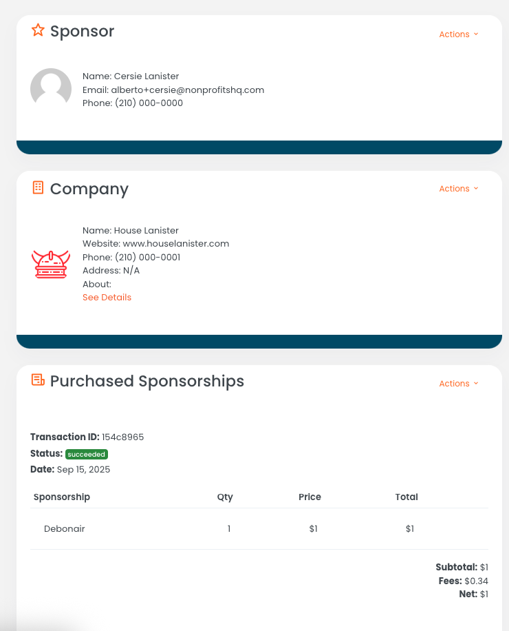 Any organization with an active event on NonprofitsHQ can take advantage of the sponsorships feature to manage and process sponsor contributions.