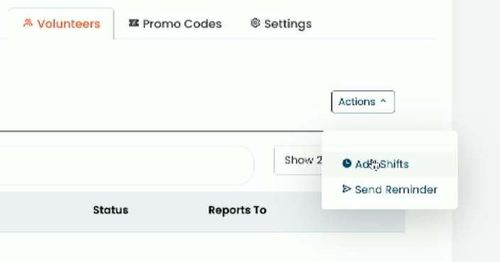 Reports To: Select the supervisor for this shift. Choose a contact from your CRM who will serve as the volunteer’s point of contact during the event.