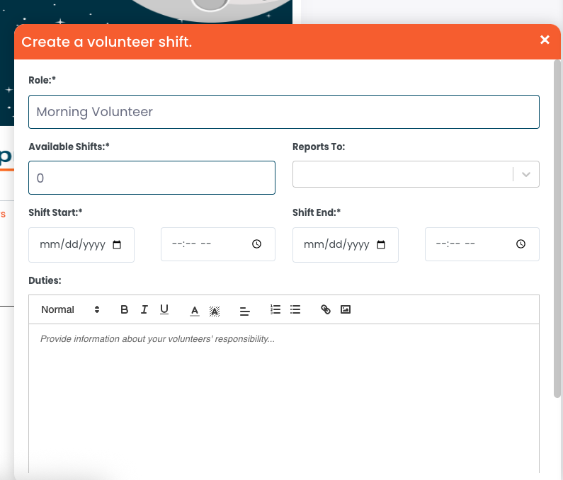 đź’ˇ Tip: Clear, detailed duty descriptions help volunteers arrive prepared and confident in their responsibilities.