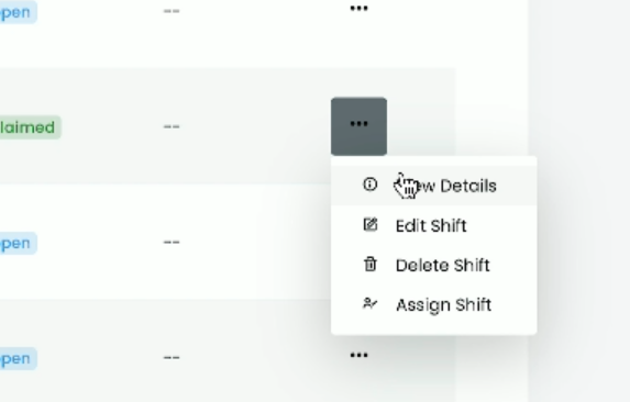 This view displays all the details about each available shift — including who it’s currently assigned to and the status of their signup.
